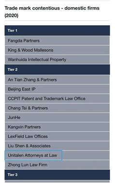 Recently, MIP, a global leading IP media, announced the 2020 IP Star ranking of trademark matters. Unitalen was found in tier 1 in Trademark Prosecution and tier 2 in Trademark Contentious again.