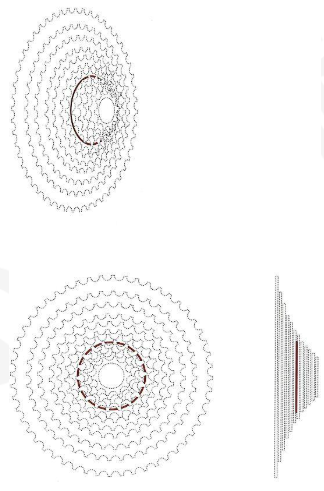 [Note] Description of the disputed trademark: "The trademark claims protection for an annular red element positioned between the sixth and seventh sprockets (gears). The figure shows the position of the red element from different perspectives. Please note that the dotted line in the figure is only used to indicate the position of the element and does not constitute a part of the claimed position mark."