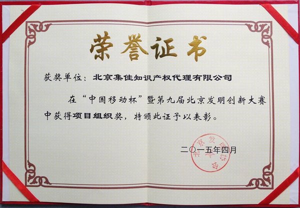 4月15日,北京發明協會成功舉辦了“中國移動杯”暨第九屆北京發明創新大賽頒獎會,集佳在本次大賽中榮獲“項目組織獎”。