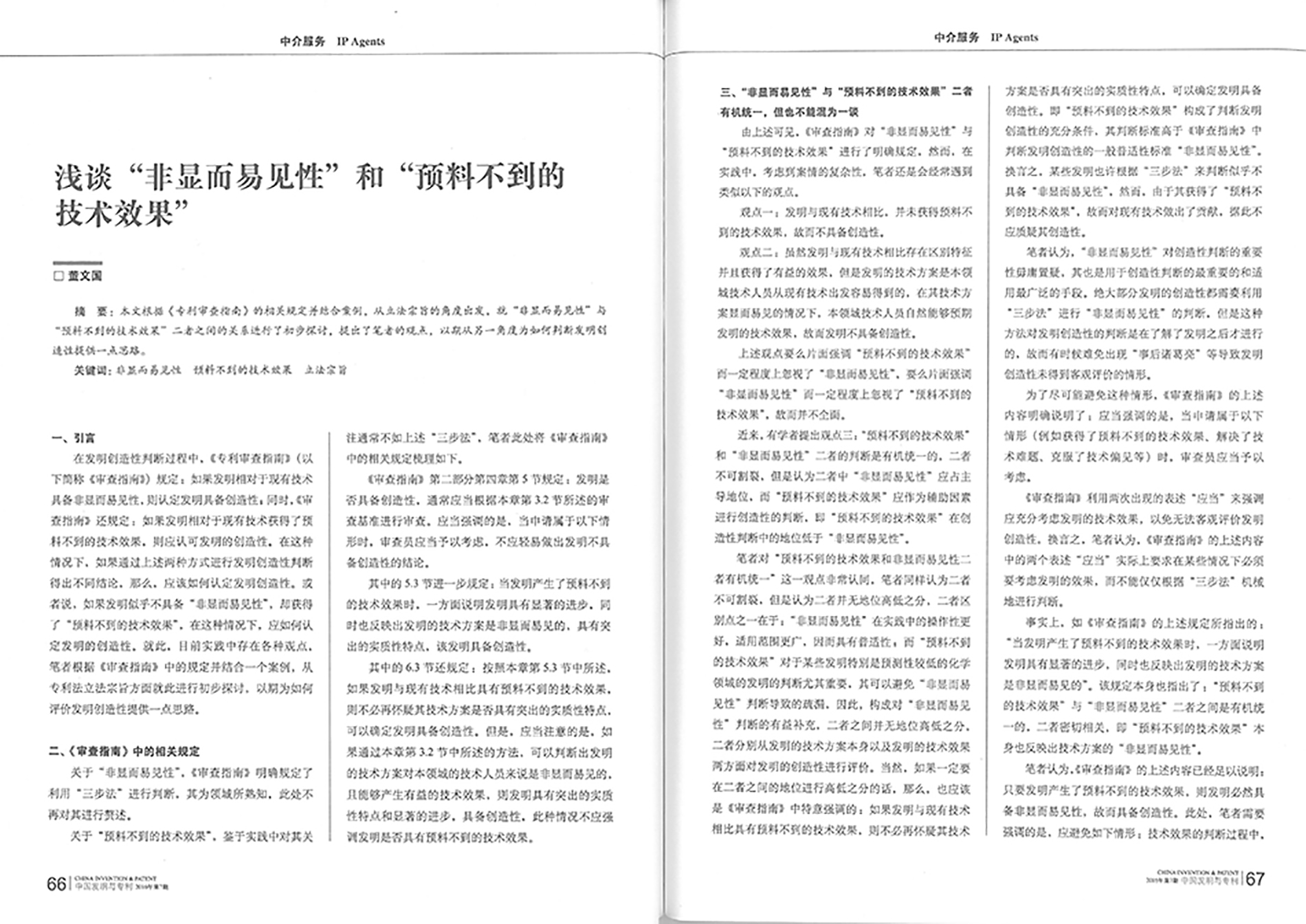 集佳文章《淺談“非顯而易見性”和“預料不到的技術效果”》在《發明與專利》發表