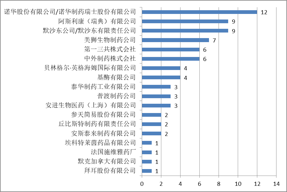 各種藥品所涉及的行政裁決案件的數(shù)量如下所示: