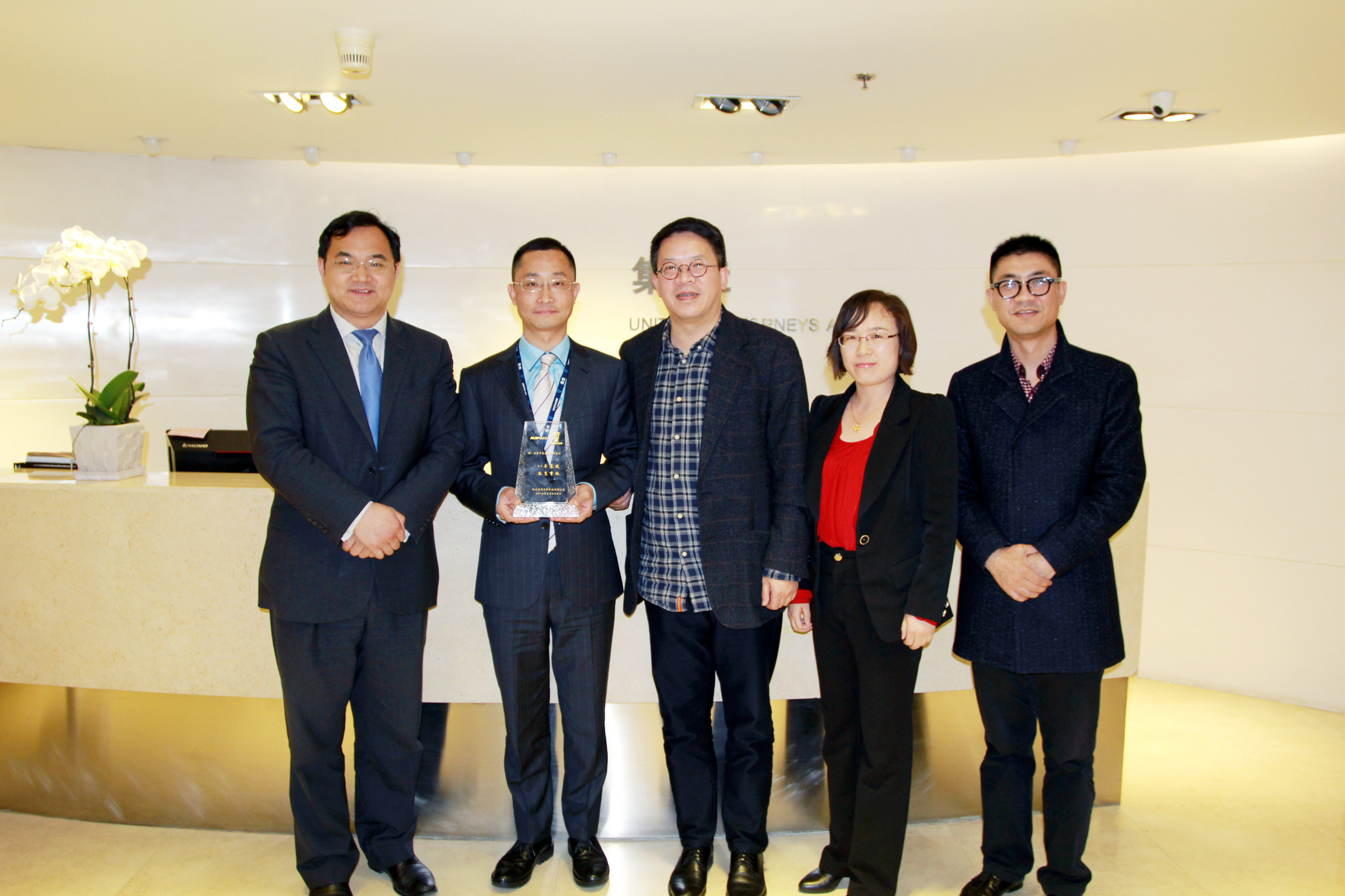 3月30日,一個再普通不過的日子,可對于集佳來說,卻是個暖心而值得紀念的日子。這一天,杭州奧普電器有限公司董事長方杰、法務部經理崔強親臨集佳,贈送牌匾,以感謝集佳與奧普攜手并肩,為取得奧普商標案的全面勝利所作出的努力。集佳知識產權代理有限公司朱國棟部長、張亞洲部長、李春亞部長、集佳律師事務所李永波主任、侯玉靜律師、奧普案知識產權顧問馬麗華等陪同接待。