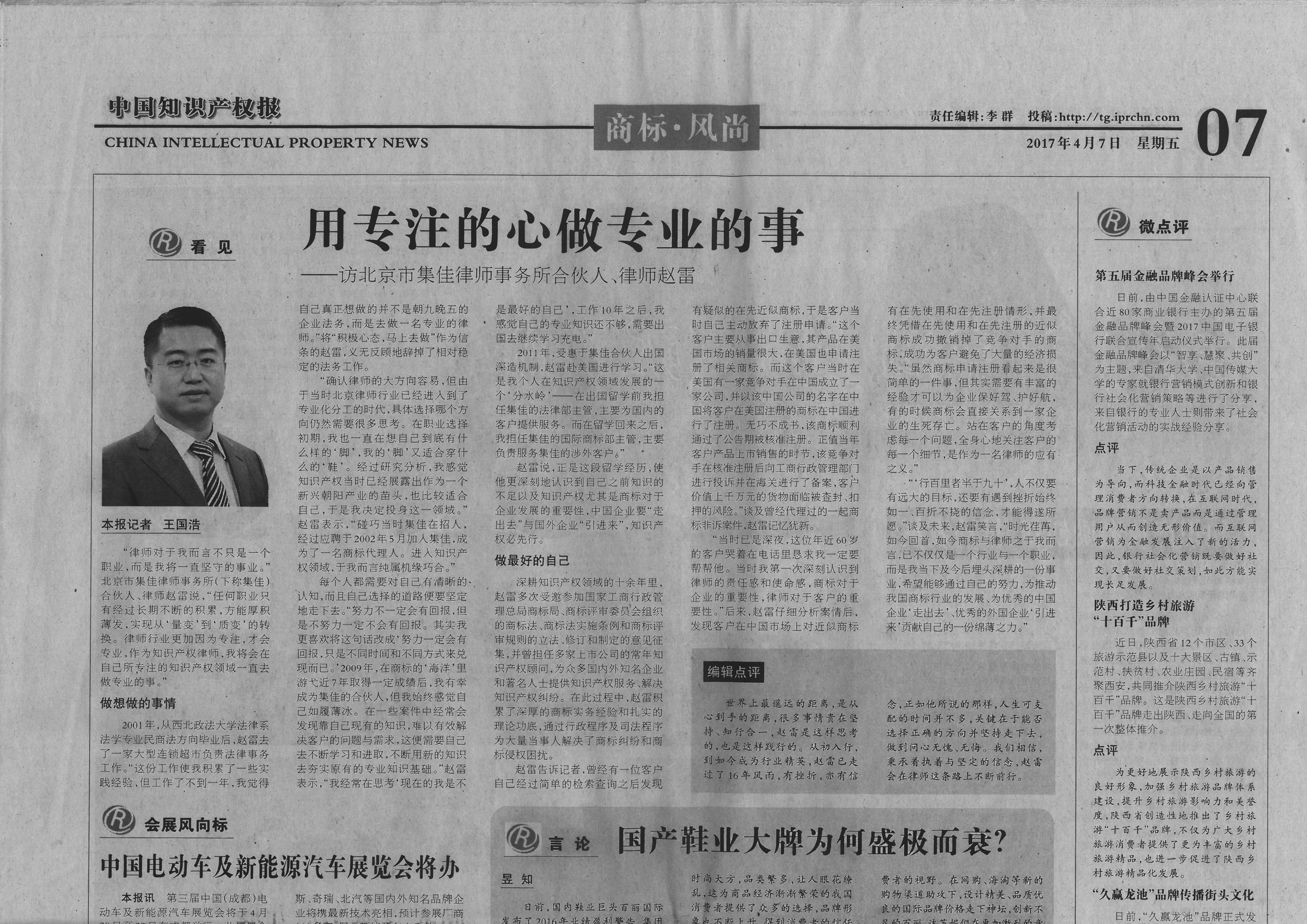中國(guó)知識(shí)產(chǎn)權(quán)報(bào)專(zhuān)訪:趙雷