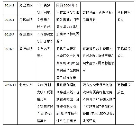 筆者也注意到,在一系列涉及游戲的商標侵權案件中,法院大多認定侵權成立。但這些案件也存在一個共性,即在先商標權人同時也是在先游戲的開發者或運營者。即便不考慮在先注冊商標,在先游戲也可以通過主張知名商品特有名稱的反法仿冒條款獲得救濟。本文附表三總結了原告具有在先作品權利人和在先商標注冊人雙重身份的案例。