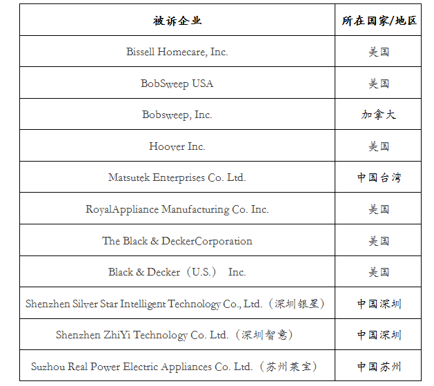 2017年4月18日,美國掃地機(jī)器人公司iRobot先后向美國國際貿(mào)易委員會(ITC)提起了“337調(diào)查”申請,指控包括3家中國公司在內(nèi)的共11家企業(yè)侵犯了其在美的6項(xiàng)專利中一項(xiàng)或多項(xiàng)權(quán)利要求,并要求有限排除令(limited exclusion order)及停止侵權(quán)(cease and desist order)。
