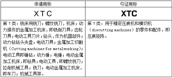“XTC”商標第01;06;07;09;11類馬德里指定新加坡申請被引證英國公司C&T MATRIX LIMITED名下的第7類在先商標下發駁回,部分駁回了申請商標在第7類商品上的申請注冊。申請商標和引證商標信息具體如下: