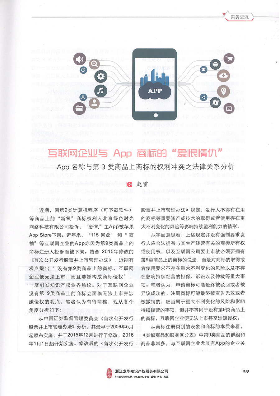 集佳文章《互聯網企業與APP商標的“愛恨情仇”》在《中華商標》發表