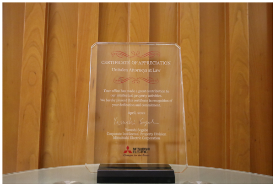 據悉,三菱電機每年在其全球范圍內合作的事務所中評選一至兩家優秀事務所進行表彰,集佳是此次獲獎的唯一一家中國事務所,并且是2019年以來第二次獲此殊榮。此次三菱電機表彰的事項為:“在為我社防止外觀設計假冒申請對策而提出的實用的商品目錄公證方法的提案中做出的卓越貢獻”。在與表彰事項相關的工作中,集佳人員工作專業、細致、認真、及時,得到了客戶的信任和高度評價。