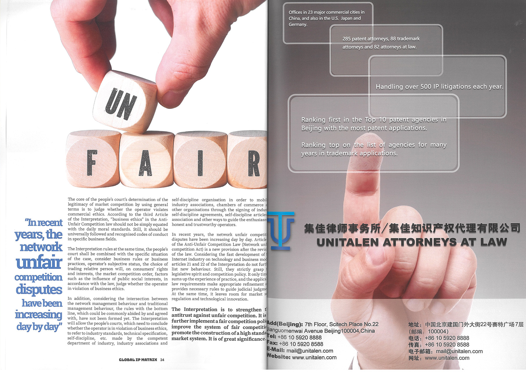 法律聲明 Unitalen Mail Box ?2016 Unitalen Attorneys at Law 版權(quán)所有 集佳知識產(chǎn)權(quán)代理有限公司 京ICP備11033076號 京公網(wǎng)安備11010502020670