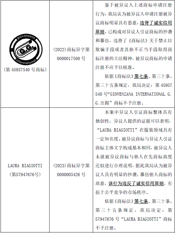 5.第57947676號“LAURA BIAGIOTTI”商標不予注冊的決定