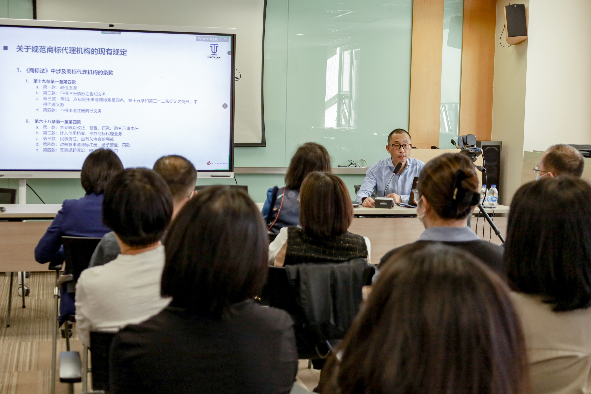 主講人張亞洲律師從《規定》制定的背景及過程、規定的主要內容、代理機構應特別注意的風險等角度對《規定》進行了詳細而深入的解讀。與會人員在認真聆聽張亞洲律師的講解后,針對《規定》的新內容,結合商標代理與維權工作中的重點難點問題展開了熱烈的交流討論,學習氛圍濃烈而生動。最后,于澤輝所長強調,全體員工務必認真領悟《規定》中的最新要求,在工作中要進一步加強行業自律,遵循誠實守信原則,為客戶提供更加優質的知識產權服務。