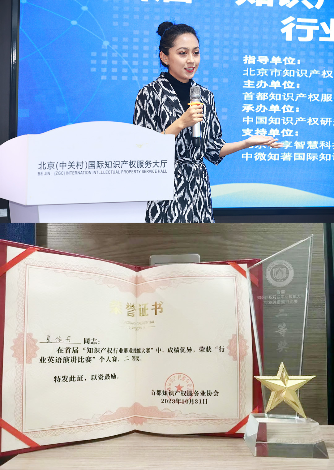 “行業(yè)英語(yǔ)演講比賽”檢驗(yàn)從業(yè)人員的專業(yè)英文口語(yǔ)表達(dá)能力,參賽選手通過(guò)展示、辯論、答問(wèn)等環(huán)節(jié),提升了自身的涉外英語(yǔ)口語(yǔ)表述能力。經(jīng)過(guò)自選題演講和命題演講,集佳選手夏依丹取得優(yōu)異成績(jī),斬獲二等獎(jiǎng)。