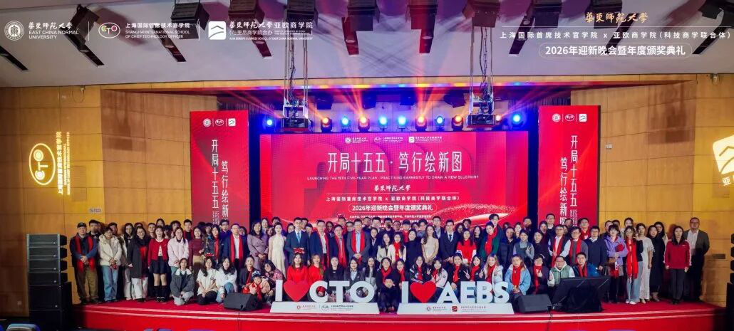 2025年12月27日,華東師范大學上海國際首席技術官學院(以下簡稱“CTO學院”)與華東師大亞歐商學院(科技商學聯合體)2026年迎新晚會暨年度頒獎典禮在普陀校區科學會堂報告廳隆重舉行。學院教師與來自全球各個國家和地區的學子齊聚一堂,多位領導和嘉賓蒞臨現場。